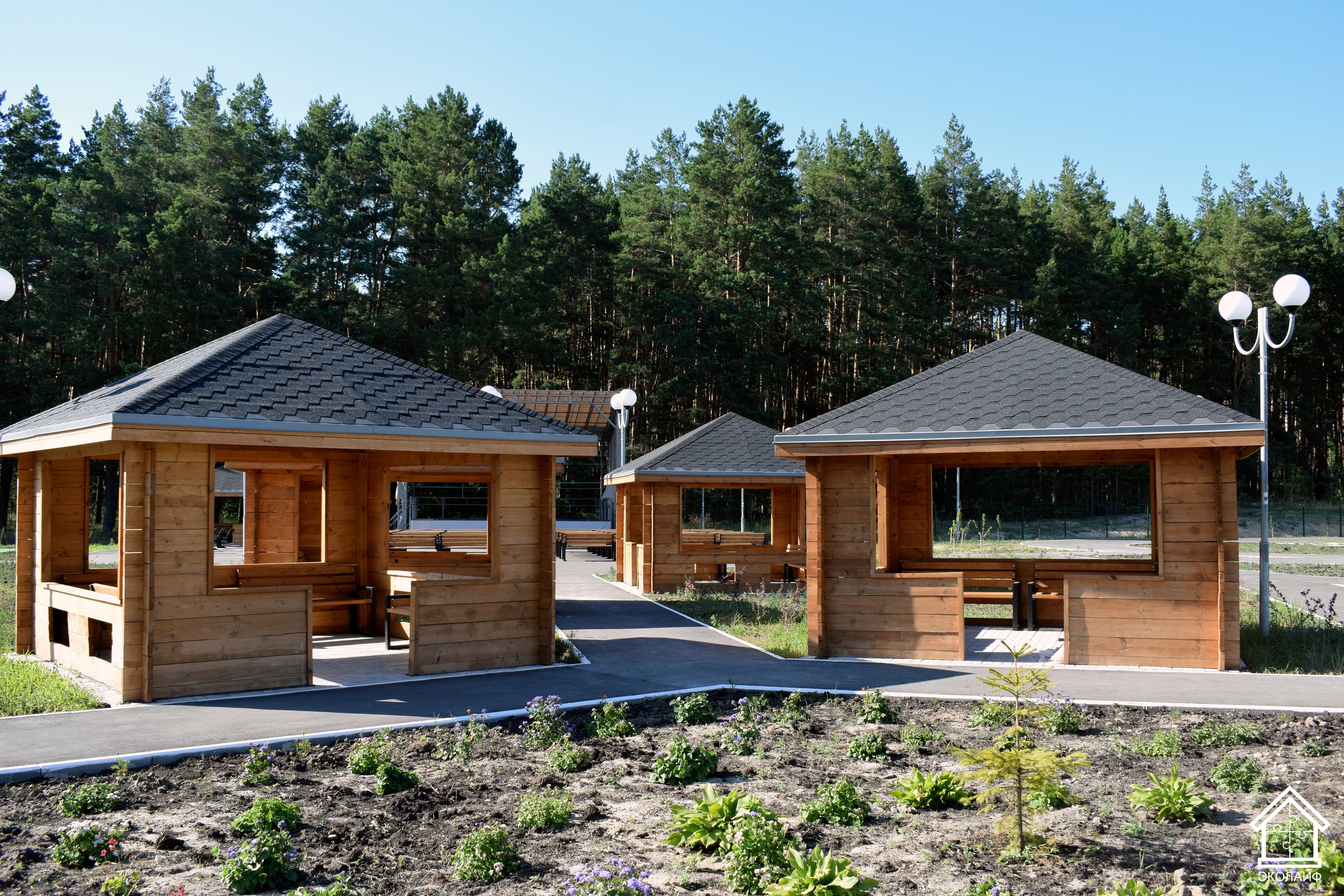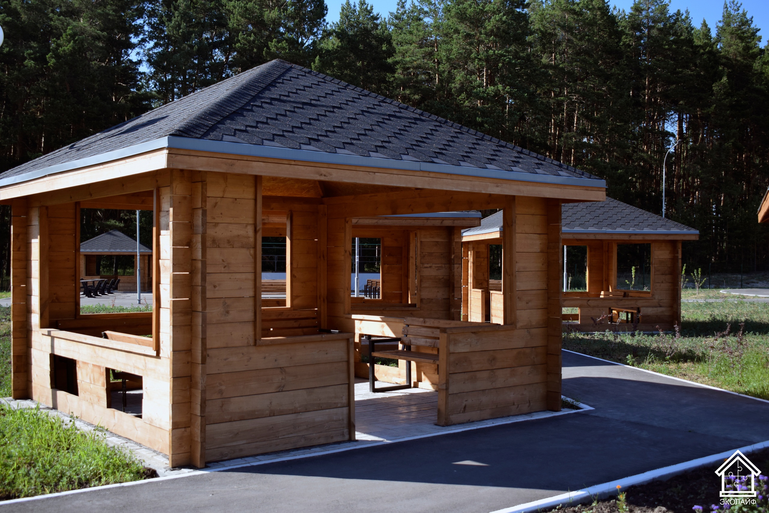 На заводе ЭкоЛайф мы производим не только быстровозводимые дома и здания, но и другие объекты, в том числе малых архитектурных форм: беседки, лавочки и скамейки, детские игровые домики и многое другое.